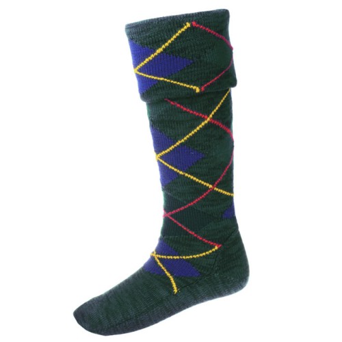 Merino wool blend tartan kilt hose. Traditional Clansman full argyll kilt hose. Knitted, fully fashioned, point linked and hand finished in Scotland.